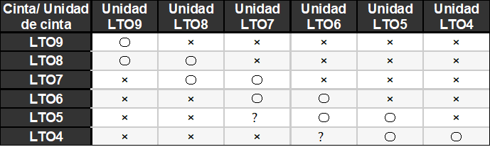 Compatibilidad de cintas / unidades de cinta LTO Ultrium