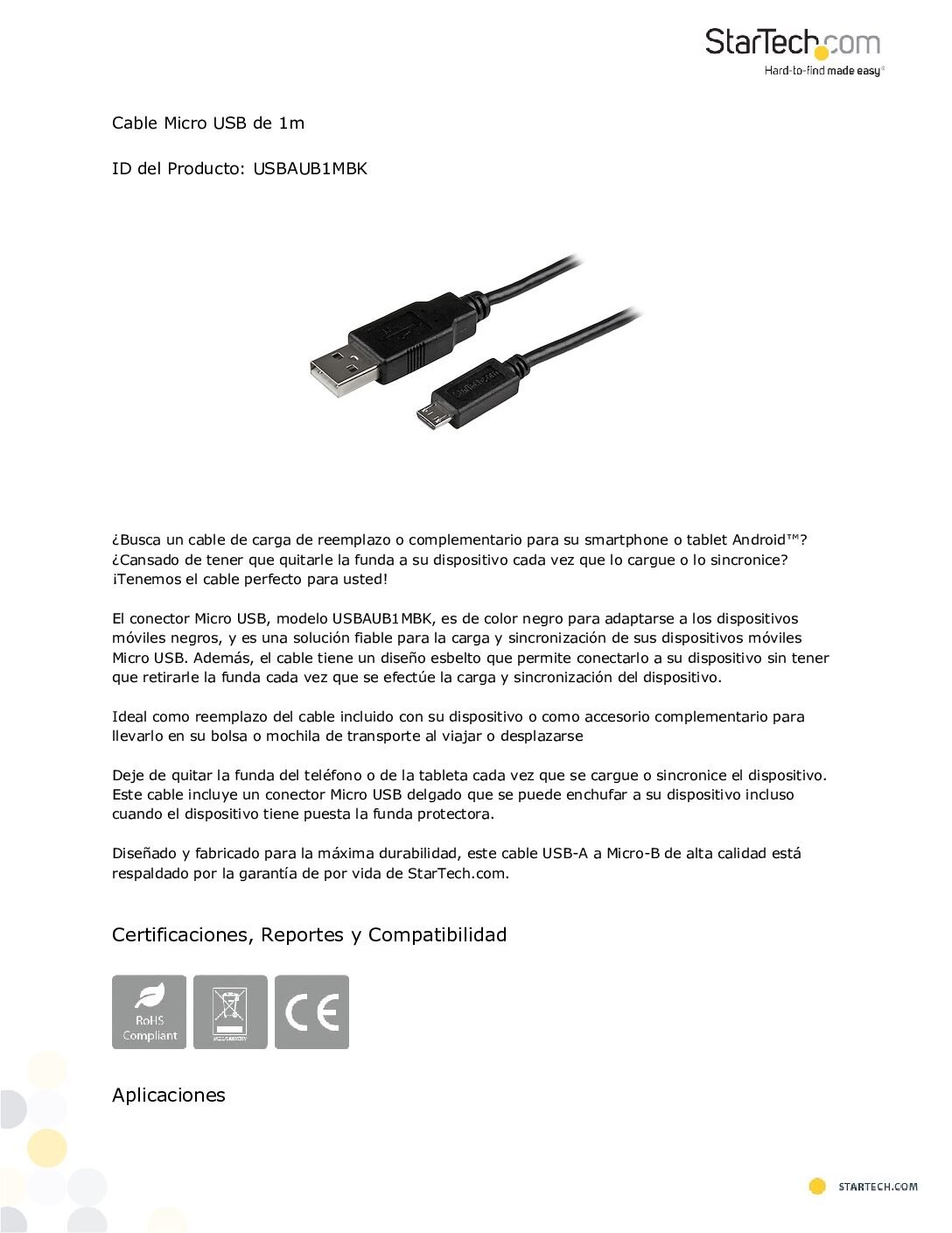 El cable StarTech Micro-USB de 1 m es compacto, fuerte y eficiente: justo lo que necesitas para mantener tus dispositivos cargados y sincronizados con confianza.