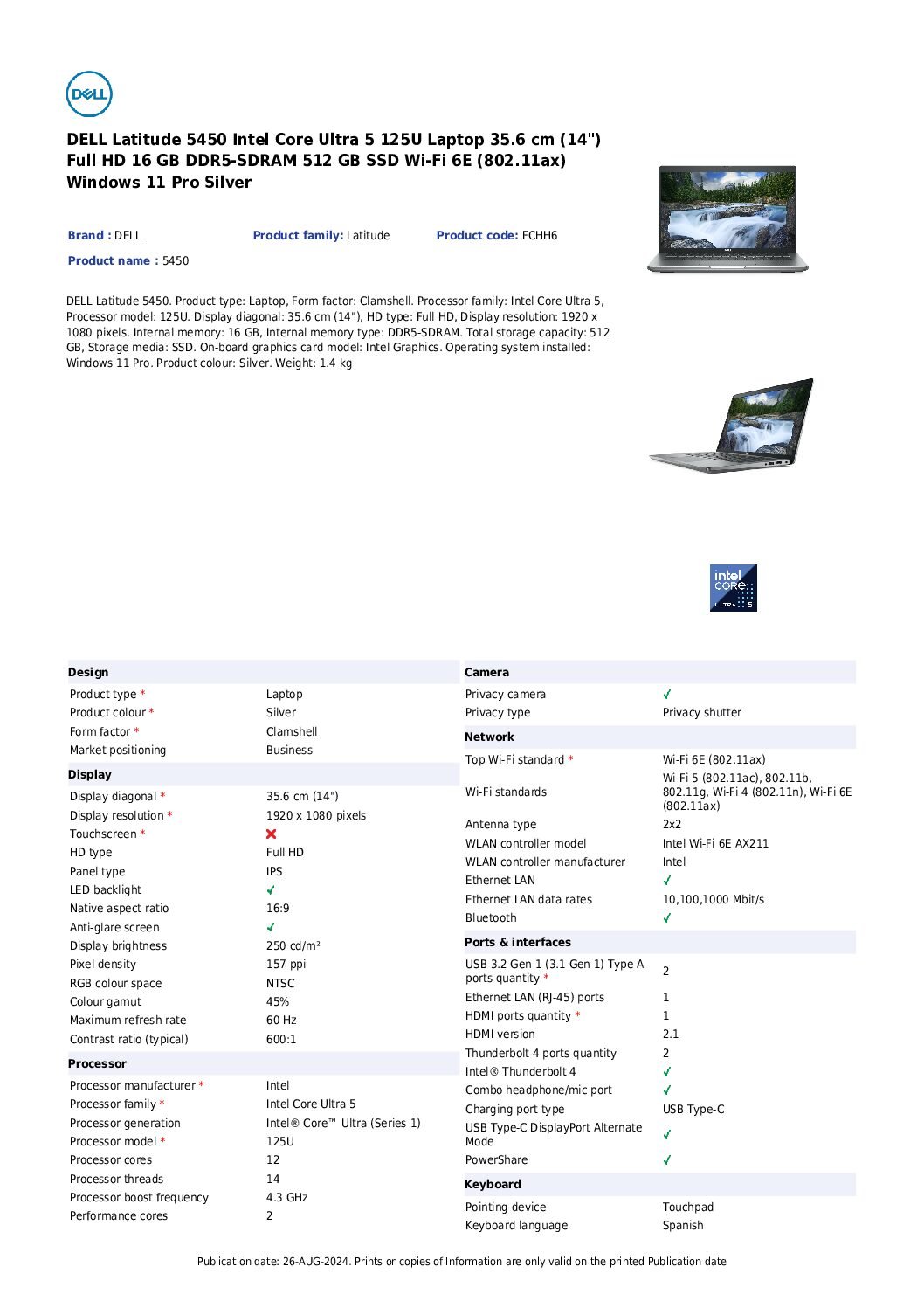 El Dell Latitude 5450 con Intel Core Ultra 5 es un portátil profesional de alto rendimiento pensado para quienes necesitan potencia, movilidad y estilo. Equipado con el procesador Intel Core Ultra 5 125U, ofrece un rendimiento ágil para aplicaciones empresariales, multitarea intensiva y trabajo remoto.