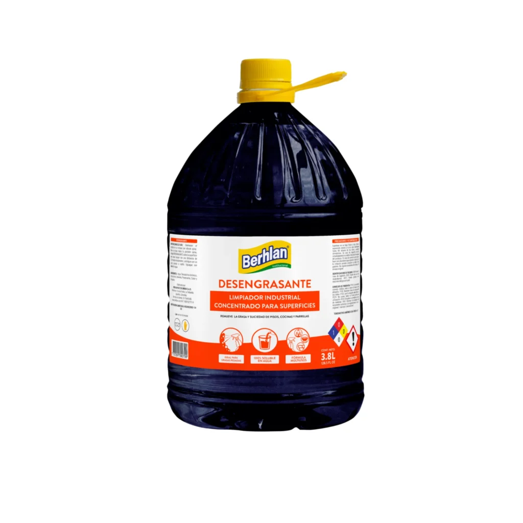 Desengrasante concentrado de 3800 ml. Limpieza profunda de grasa en cocinas, talleres y superficies industriales. Eficaz, económico y potente.