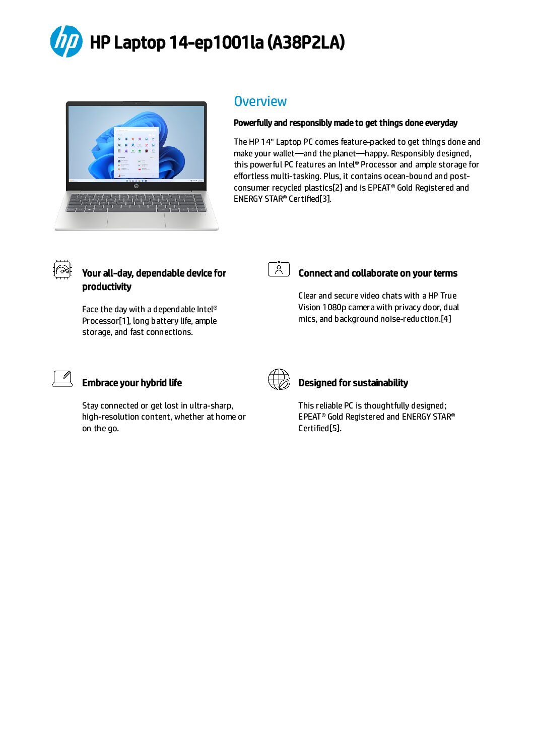 Con el HP 14-ep1001la, tienes en tus manos un portátil confiable, potente y visualmente atractivo para acompañarte en cada desafío diario.