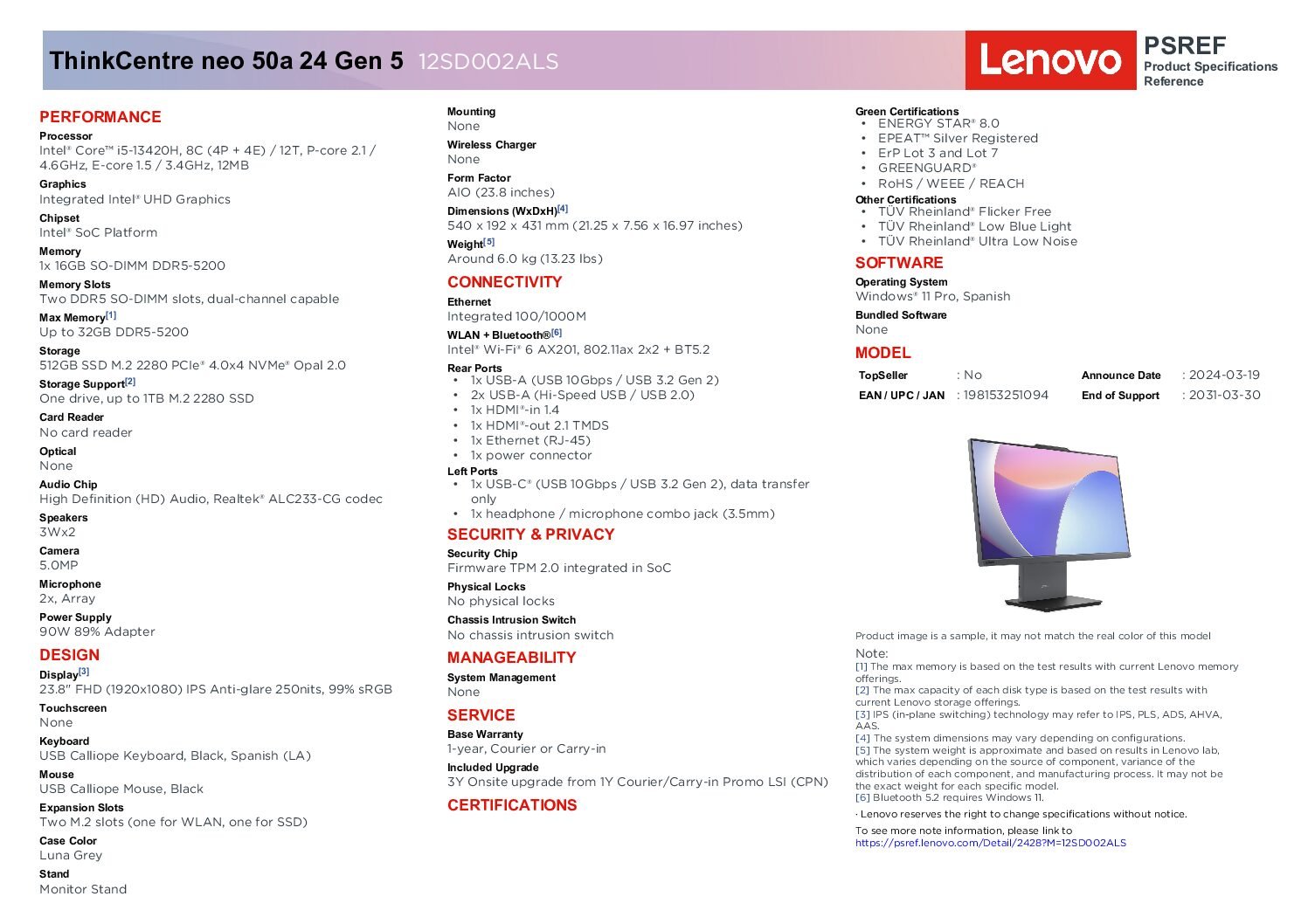 El diseño compacto y minimalista optimiza el espacio del escritorio, siendo ideal para oficinas modernas, entornos colaborativos o home office. Su arquitectura All-in-One reduce el cableado y mejora la organización.
